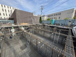 この現場、上階がかなりこだわった設計となっていて、鉄筋工事ではあまり耳にしない『むくり』という言葉を新たに覚えました。